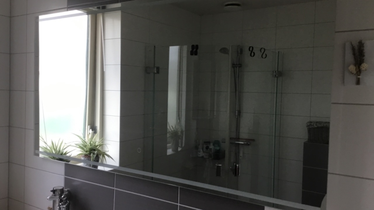 Mooie spiegel, met verwarming wat heel praktisch is.