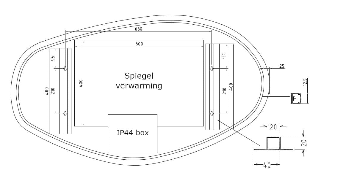De LED verlichting achter de spiegel zit netjes verborgen achter een licht doorlatend aluminium profiel. Hierdoor zijn de LED punten niet zichtbaar en wordt de LED strip tevens beschermd tegen de invloed van vocht en stof.