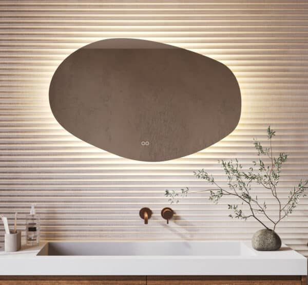 Deze fraai afgewerkte, ovale badkamerspiegel heeft een breedte van 120 cm en een hoogte van 70 cm. De dimbare 24V verlichting schijnt vanachter de spiegel sfeervol over de wand. Naast verlichting is de spiegel voorzien van spiegelverwarming en een dubbele touch schakelaar voor het instellen van de juiste lichtkleur en lichtsterkte. Zo creëer je in een handomdraai de juiste sfeer in de badkamer. Lees verder...